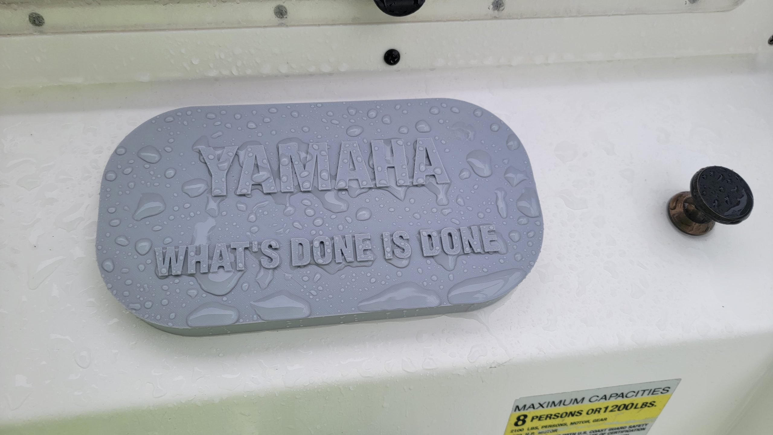 A friend on the dock asked me to create a cover for a new Yamaha gauge that he got installed. This cover is 3D printed and has the name of his boat on it.